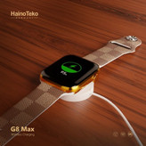 ساعت هوشمند Haino Tecko G8 MAX سری 8 محصول شرکت هاینوتکو آلمان ضمانت اصالت این برند، یک برند آلمانی بوده که محصولات اقتصادی و باکیفیت خود را در چین مونتاژ میکند. تمرکزش را روی طراحی و تولید لوازم جانبی و تجهیزات الکترونیکی معطوف کرده و ساعت هوشمند هاینو تکو مدل G8 MAX ، یک نمونه از تولیدات پرفروشش میباشد. اگر به دنبال یک ساعت هوشمند مقرون به صرفه هستید که از قابلیت مکالمه تلفنی برخوردار باشد، کمتر ساعت هوشمندی با رده قیمتی Haino Teko G8 MAX پیدا میکنید. دارای بند سرامیکی و فوق العاده زیبا مجهز به حسگرهای ضربان قلب ، کالری سنج ، اندازه گیری اکسیژن خون ، گام شمار ، اندازه گیری فشار خون ، کیفیت خواب و … قابلیت مکالمه دارای تاییده ضد اب IP68 نسخه بلوتوث 5.0 باتری 220 میلی آمپر ساعتی