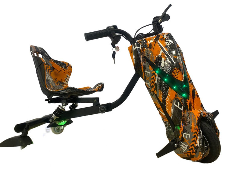 نسل جدید اسکوتر های برقی به صورت موتوری که بسیار مهیج تر از اسکوترهای معمولی است . این مدل اسکوتر ها سه چرخ بوده چرخهای عقب آن معلق می باشد که این امر باعث شده حرکت با آن به صورت 360 درجه ای و بسیار مهیج شود این مدل از اسکوتربرقی ها بسیار سریع و هیجان انگیز است . موتور دریفت با باطری لیتیومی 36 ولتی با آمپر بالا امکان زمان بیشتر شما از اسکوتر را فراهم می کند. این اسکوتر دارای موتور براشلس 600 واتی قدرتمند می باشد.
