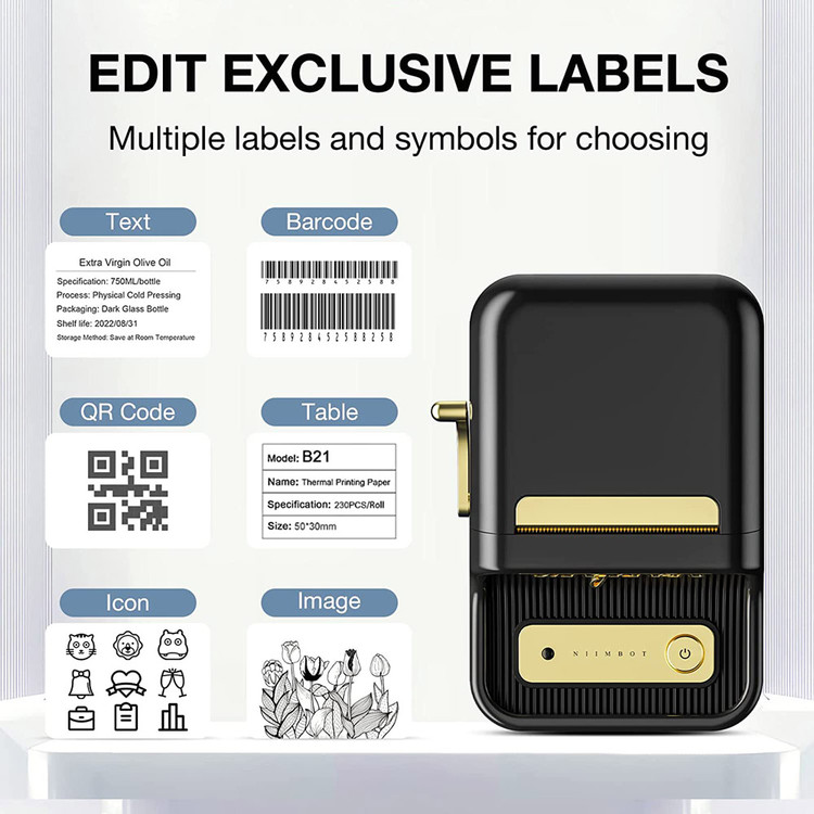 لیبل زن B21 از برچسبهای عرض ۲-۵ سانتیمتر پشتیبانی میکند که میتواند به طور گسترده در مواد غذایی، پزشکی، پوشاک، جواهرات، سوپرمارکت، داراییهای ثابت، تجاری، مشاغل کوچک، کارخانهها و غیره استفاده شود.