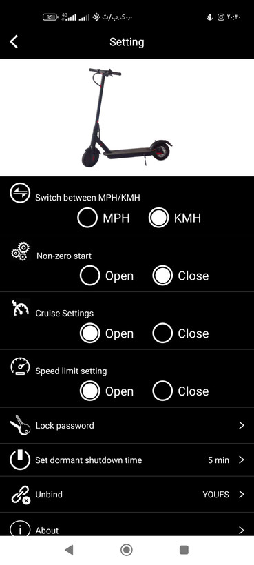 خاموش و روشن کردن اسکوتر و تمام تنظیمات با گوشی موبایل