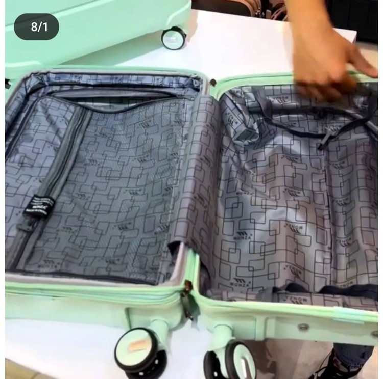 چمدان مونزا از جنس 100 درصد پروپیلن که در طرح و رنگ و سایز های مختلف موجود می باشد. همانطور که می دانید چمدان های ست داخل یکدیگر قرار می گیرند . سایز متوسط در سایز بزرگ و سایز کوچک در سایز متوسط جا داده می شوند . جنس بدنه نشکن و انعطاف پذیر است . این نوع چمدان ها رو وقتی از نزدیک مشاهده می کنید تفاوتش رو از لحاظ مقاومت و زیبایی با سایر چمدان ها حس می کنید ف خیلی شفاف ، براق و زیباست . دارای قفل رمزی می باشد که می توانیم سر زیپ ها را درون آن قرار بدیم تا چمدان باز نشود . داخل چمدان دو محفظه برای جای دادن وسایل وجود داره که یک سمت دارای جیب های داخلی و محفظه ی لباس های چرک است رو می تونیم با بستن زیپ کیپ کنیم . استفاده از این چمدان بسیار راحت بوده ، چرخ های استفاده شده در این چمدان سایلنت هست که این چرخ های سایلنت بسیار صدای کمی دارند و به هیچ عنوان در حین حمل و نقل آزار دهنده نیست بسیار مقاوم بوده ، 4 چرخ دوبل 360 درجه در این چمدان تعبیه شده . این چمدان مثل سایر چمدان ها دارای دسته ی آلمینیومی ترولی است . آلمینیوم آلیاژ خیلی سبک و مقاومی برای دسته ترولی می باشد . که نرمی این چمدان طوری هست که می تونید چمدان رو تا کنید که کاملا نشکن بوده . در سفر های هواپیمایی که چمدان رو در فرودگاه تحویل بار میدیم در پرتاب ها هیچگونه آسیبی نمی بینند و بسیار بدنه منعطفی دارند . در داخل چمدان دو نیمه کاملا مساوی هست که یک سمت برای افتادن لباس کمربند تعبیه شده و جنس آستر استفاده در چمدان از پلی استر هست . طراحی چمدان به شکل تخم مرغی است ، گوشه های خمیده ی آن باعث میشه تا بر اثر ضربه چمدان قِل بخوره و آسیب نبینه ، همینطور شدت ضربه خیلی کاهش پیدا میکنه