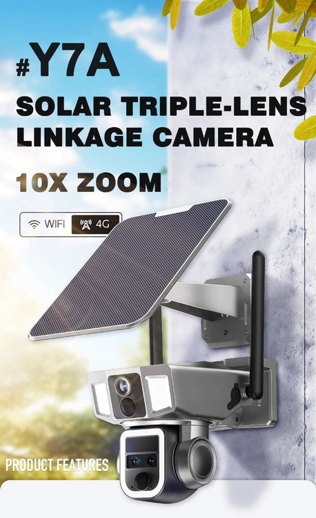 دوربین مدار بسته بی سیم سولار CRONY D5 WiFi-4K-8MP Solar Dual Linkage Battery PT Camera 8MP | بدون نیاز به تنظیم فوکوس، تصویر پس از نصب واضح است Solar triple-lenz linkage Camera 10x z