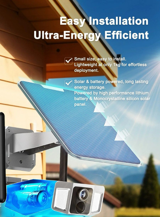 دوربین مدار بسته بی سیم سولار CRONY D5 WiFi-4K-8MP Solar Dual Linkage Battery PT Camera 8MP | بدون نیاز به تنظیم فوکوس، تصویر پس از نصب واضح است