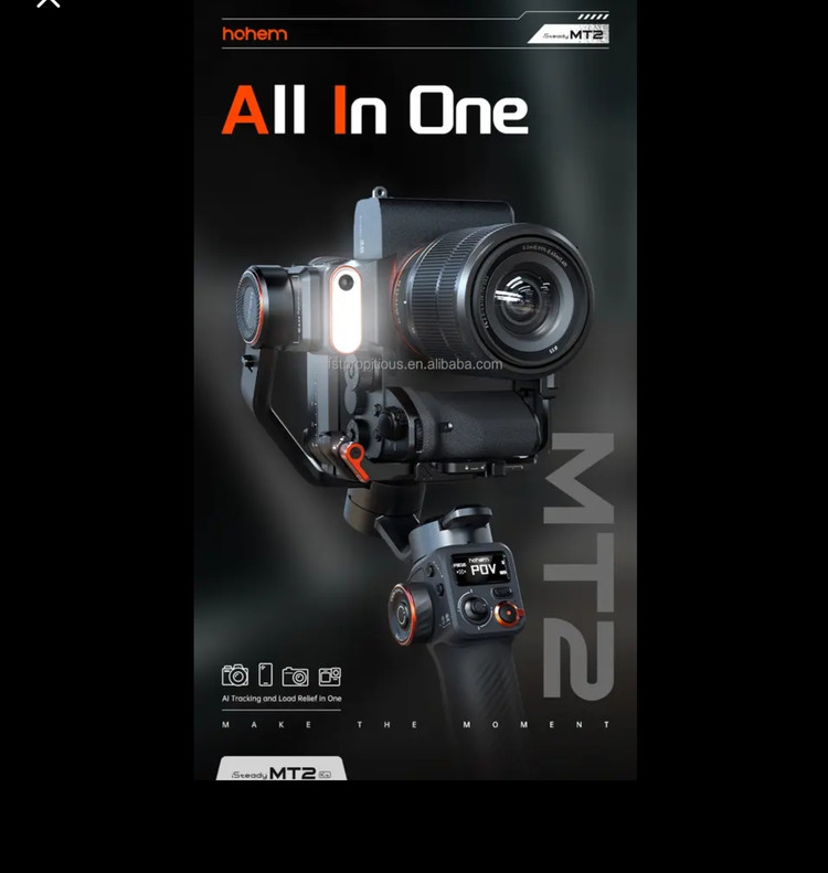 تثبیتکننده لرزشگیر گیمبال hohem iSteady MT2 برای دوربین و گوشیهای هوشمند، گیمبال 3 محوره ارتقا یافته 2023، ردیاب هوش مصنوعی با نور پرکن/CCT/RGB، گیمبال برای آیفون 14 و 15 پرو مکس و اندروید، تثبیتکننده تلفن برای ضبط ویدیو