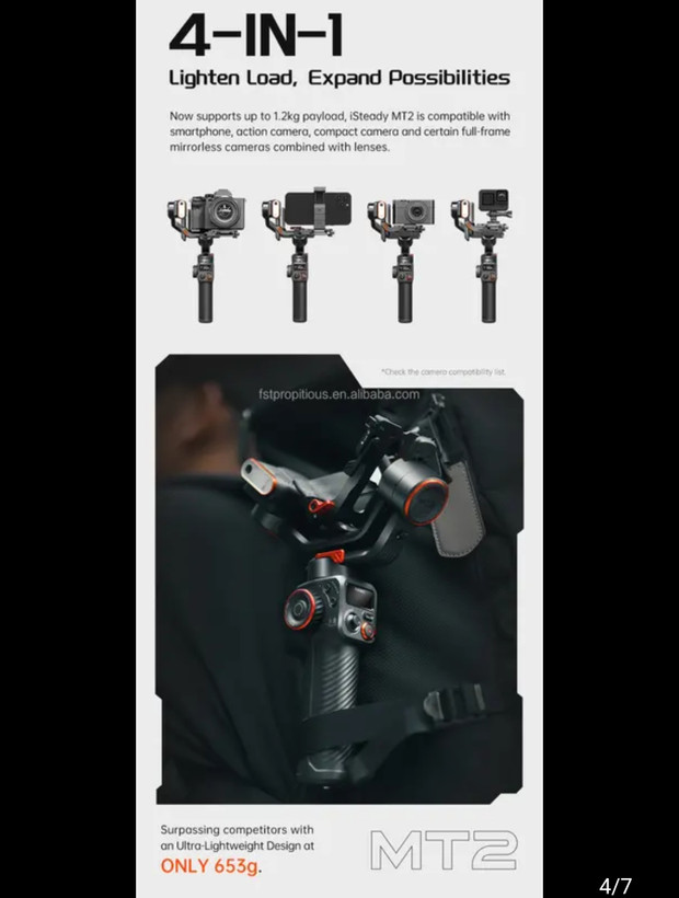 [الگوریتم تثبیتکننده نسل هفتم iSteady] با تثبیتکننده 3 محوره و فناوری لرزشگیر iSteady 7.0، این گیمبال تلفن یک تغییر دهنده بازی برای سازندگان محتوا در همه سطوح است. اکنون میتوانید لحظات نفسگیر را با ثبات و نرمی بینظیر ثبت کنید، چه فیلمبرداری از پروژه پرشور خود، چه فیلمبرداری از زندگی روزانهتان، جریان ماجراجوییهایتان یا گرفتن سلفیهای خیرهکننده. محتوای خود را با گیمبال تلفن iSteady M6 ارتقا دهید. اکنون مال خود را بگیرید و فیلمساز درونی خود را آزاد کنید!