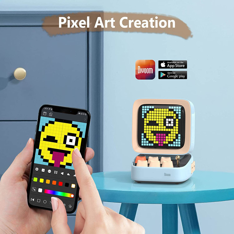 Divoom Ditoo Retro Pixel Art Game Bluetooth Speaker with 16X16 LED App Controlled Front Screen (Blue) …