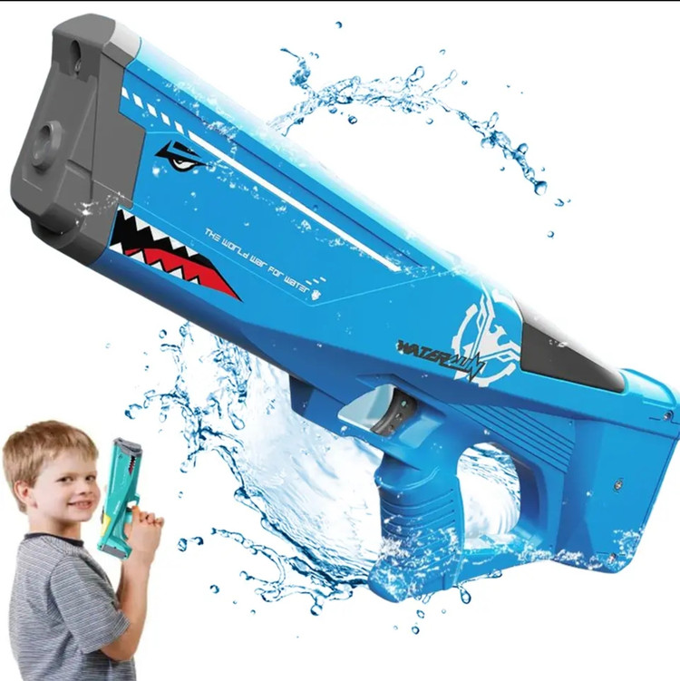تفنگ آب پاش شارژی مدل نهنگ واترگان WATER GUN ،این محصول جدید و هیجان انگیز دارای مخزن آب سرخود می باشد که گنجایش نیم لیتر آب را در خود دارد و قابلیت شارژ باتری به صورت سوکتی است و امکان پرتاب آب تا 12متر را دارا می باشد.باتری این تفنگ جذاب قابلیت نگهداری تا 15الی 20دقیقه را دارد .بدنه ی این تفنگ از پلاستیک فشرده ی نشکن ساخته شده است.این محصول برای بازی های دسته جمعی و تک نفره برای کودکان سه سال به بالا در حیاط منزل یا محیط های باز مانند پارک ،مراکز آموزشی ،مهدهای کودک مناسب می باشد.