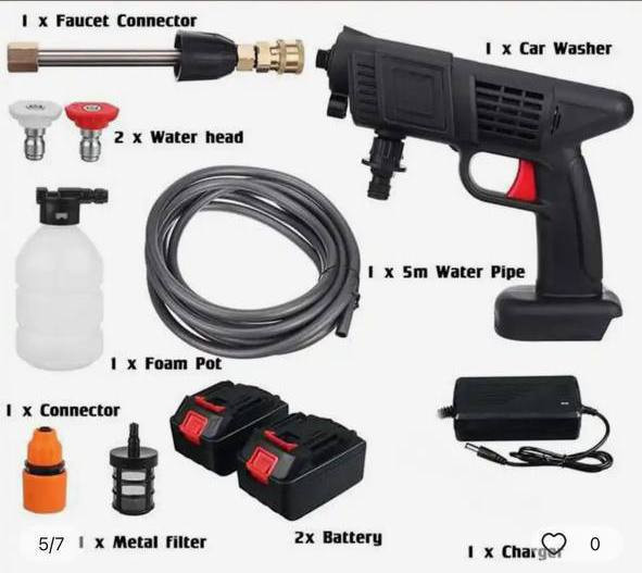 ساخت کشور چین دارای فیلتر تصفیه و شلنگ رفت دارای مخزن فوم برای مواد کارواش دارای 2 عدد باتری و آداپتور قدرت 300 وات وزن 2 کیلو گرم