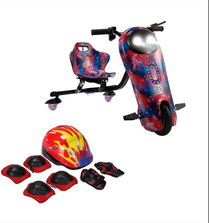 نسل جدید اسکوتر های برقی به صورت موتوری که بسیار مهیج تر از اسکوترهای معمولی است . این مدل اسکوتر ها سه چرخ بوده چرخهای عقب آن معلق می باشد که این امر باعث شده حرکت با آن به صورت 360 درجه ای و بسیار مهیج شود این مدل از اسکوتربرقی ها بسیار سریع و هیجان انگیز است . موتور دریفت با باطری لیتیومی 36 ولتی با آمپر بالا امکان زمان بیشتر شما از اسکوتر را فراهم می کند. این اسکوتر دارای موتور براشلس 350 واتی قدرتمند می باشد.