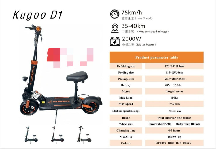 اسکوتر برقی صندلی دار Kugoo کوگو کایان زارا مدل D سفارش روسیه