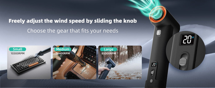 به آرامی بلغزانید تا جریان هوا را به طور مداوم از 1 تا 100 تنظیم کنید تا کنترل دقیقی داشته باشید و به شما امکان میدهد قدرت را متناسب با نیازهای خاص خود تنظیم کنید.
