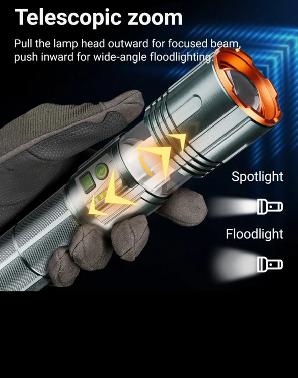 چراغ قوه زوم دار لیزری ۱ کیلومتری فانوس دار 8 حالته پاوربانک دار YEMAO
