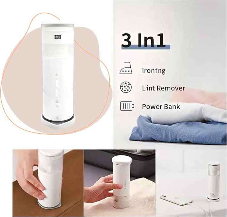 اتو بخار بی سیم مسافرتی 3 در 1 برای لباس با پرز زدا پرزتراش پارچه - پاوربانک 8000 میلی آمپر ساعتی، بی سیم، سبک و قابل حمل اتو مسافرتی مدل D1