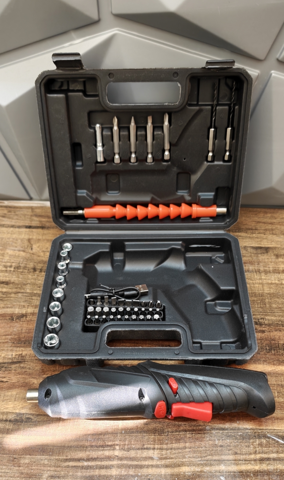 ✔ دارای لوازم کامل: 30 عدد نوک پیچ گوشتی کوتاه، چهار عدد نوک پیچ گوشتی بلند، رابط تاشو، تبدیل بکس، 2 عدد مته، 8 عدد بکس و کابل شارژ