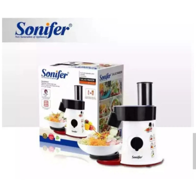 سالاد سازها می توانند با سرعتی معین سبزیجات را به یک سایز برش دهند، در واقع این وسایل برادر کوچک غذا سازها می باشند اما از نظر امکانات محدودتر هستند. طراحی سالاد سازها به گونه ای است که در همان نگاه اول می توان طرز کار با آن را یاد گرفت و با توجه به سایز دهانه ورودی دستگاه می توان از آن برای برش زدن و قطعه کردن انواع مواد غذایی استفاده کرد. کمپانی سونیفر با در نظر گرفتن این نیاز، سالاد سازی تولید کرده است که با آن میتوان انواع مواد غذایی را با پنج تیغه ای که برای آن در نظر گرفته است برش زد. این سالاد ساز دارای پنج دیسک برای برش نازک، ضخیم، خلال، رنده ریز و درشت دارد. یکی از مزایای مهم در این نوع سالاد ساز قدرت موتور، جنس و نوع تیغه های آن می باشد، موتور این سالاد ساز دارای تنظیمات دو سرعته می باشد و همچنین جنس تیغه ها نیز از استیل ضد زنگ می باشند و زمانی که با قدرت موتور بالا ترکیب می شوند توانایی خرد کردن انواع مواد غذایی را دارند. همچنین این سالاد ساز قابلیت جدا سازی قطعات دارد و پس از کار می توان تک تک اجزای آن را شسته و از تمیزی آن اطمینان خاطر داشت.