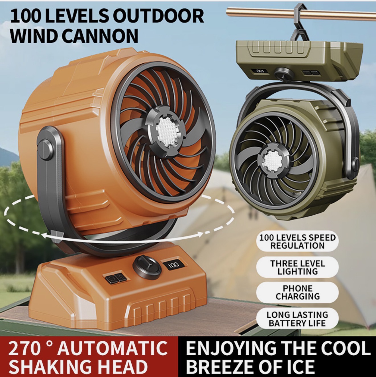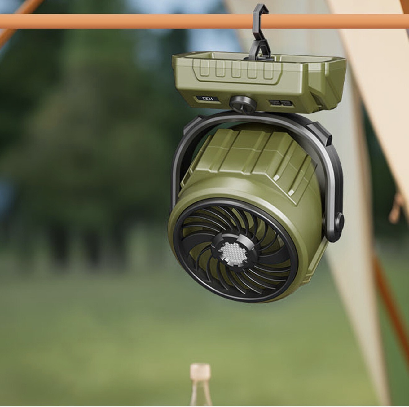 کافیست دستگاه را از طریق USB یا Type-C شارژ کنید، سپس تنظیمات مورد نظر خود را اعمال کنید. میتوانید آن را داخل چادر آویزان کنید یا روی سطح صاف قرار دهید تا بهترین جریان هوا را داشته باشید.