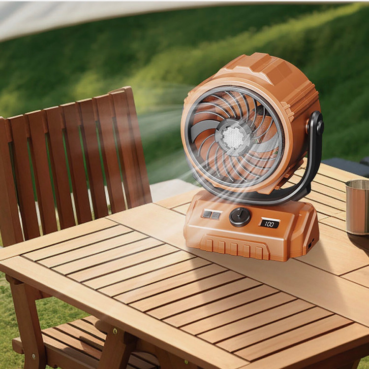 پنکه شارژی چرخان چراغ دار کمپینگ
